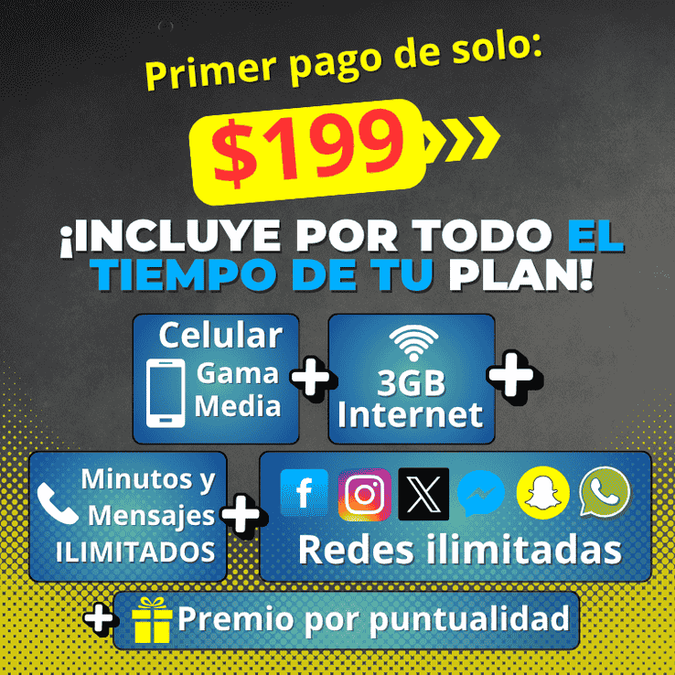 Revoluciona tu experiencia móvil Obtén el nuevo smartphone que deseas Disfruta de la última tecnología con nuestros exclusivos planes. Sin grandes inversiones iniciales, con todos los beneficios incluidos. al final de tu plan... ES 100% TUYO! Botón Ver Beneficios Ver Beneficios VER PLANES